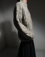 ▼Item / chunky wool fisherman aran knit sweater high-neck écru