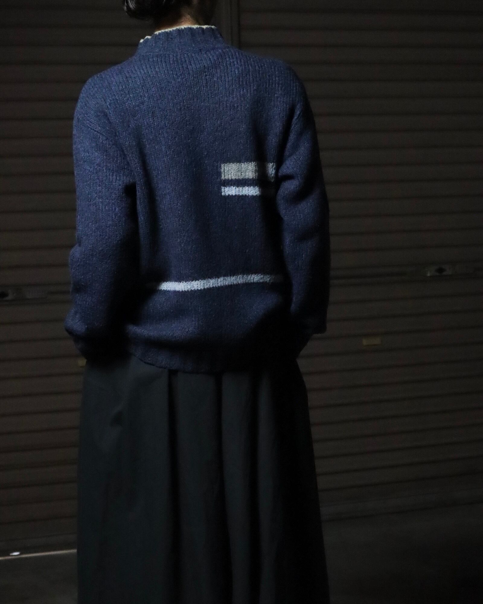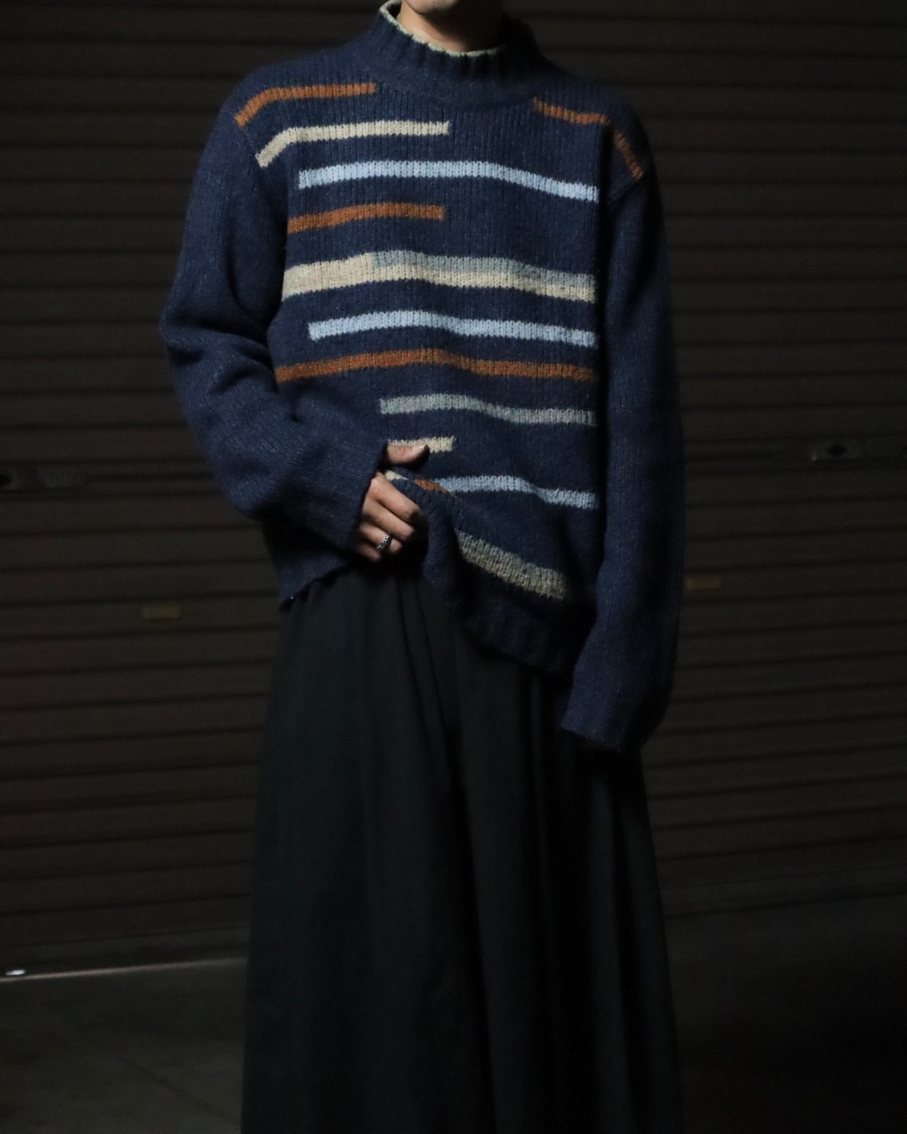 ▼Item / Spain made unique stripes high neck ribbed knit wool blend