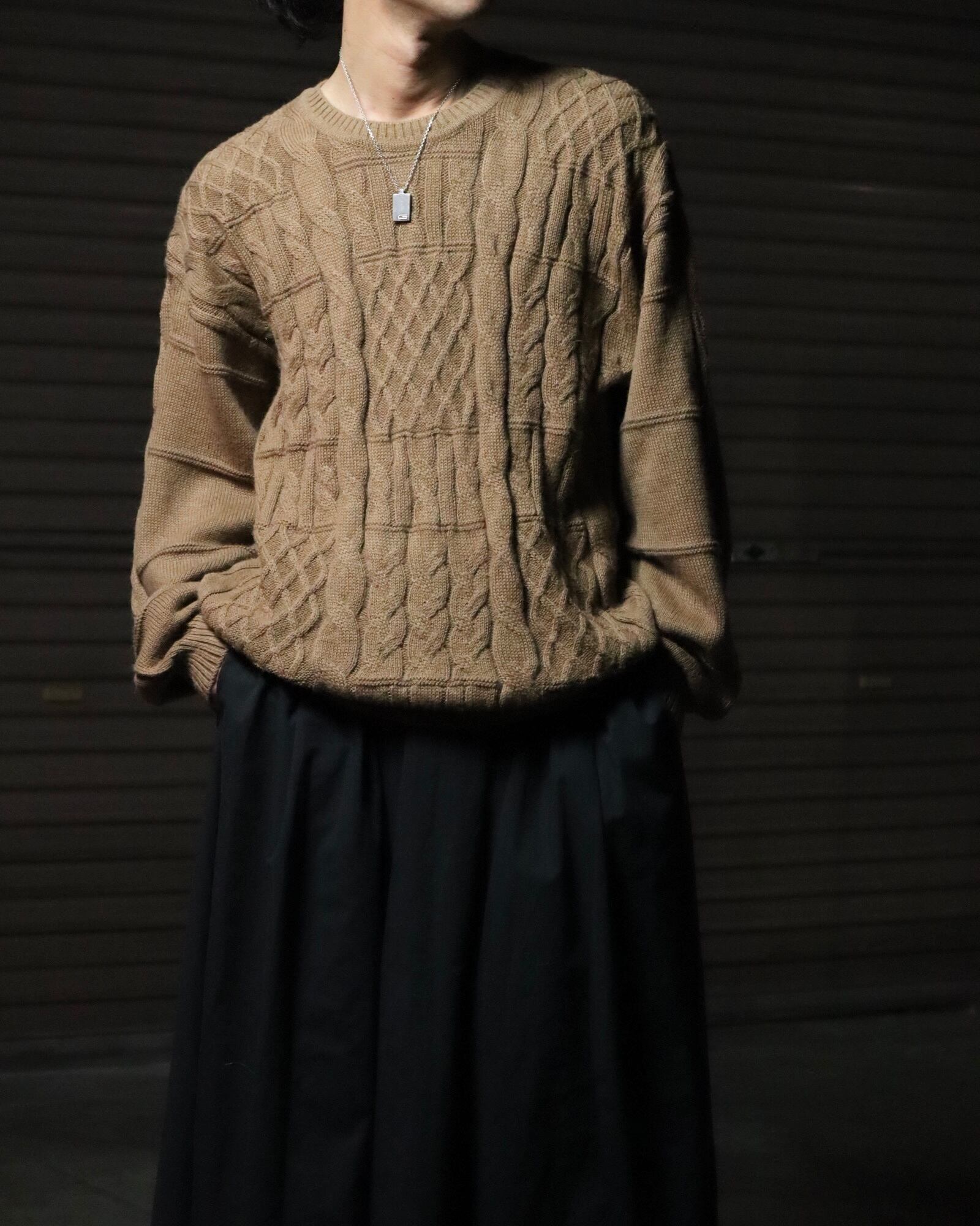 ▽Detail / ケーブル編み、クルーネック、袖・裾リブ