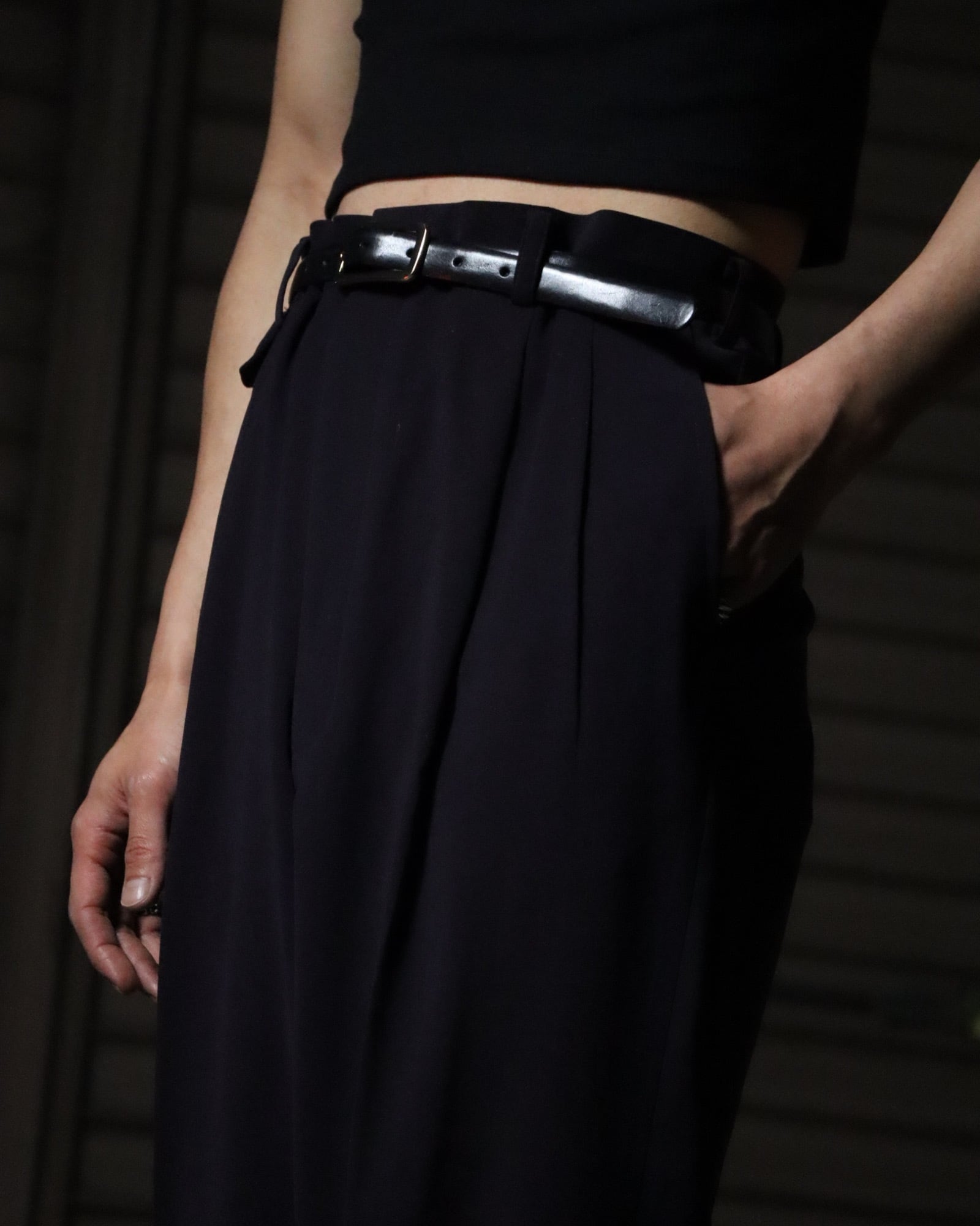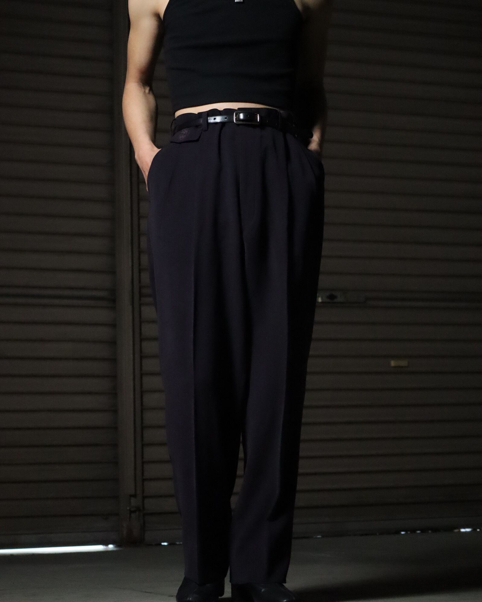 ▼Item / suede like 2tuck wide-straight slacks purple black