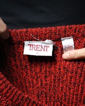 ▼Item / red × black melange ribbed knit oversized