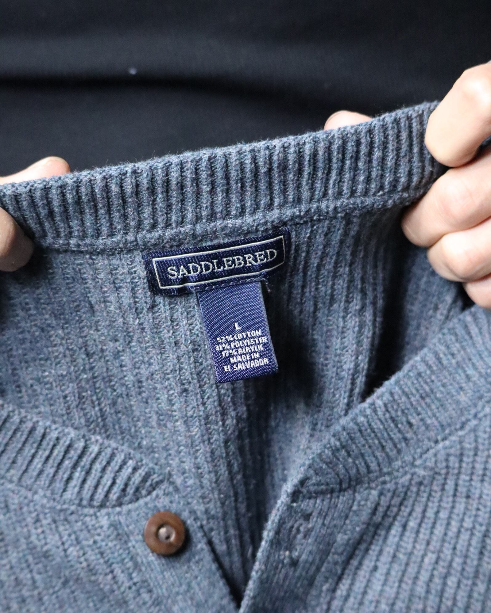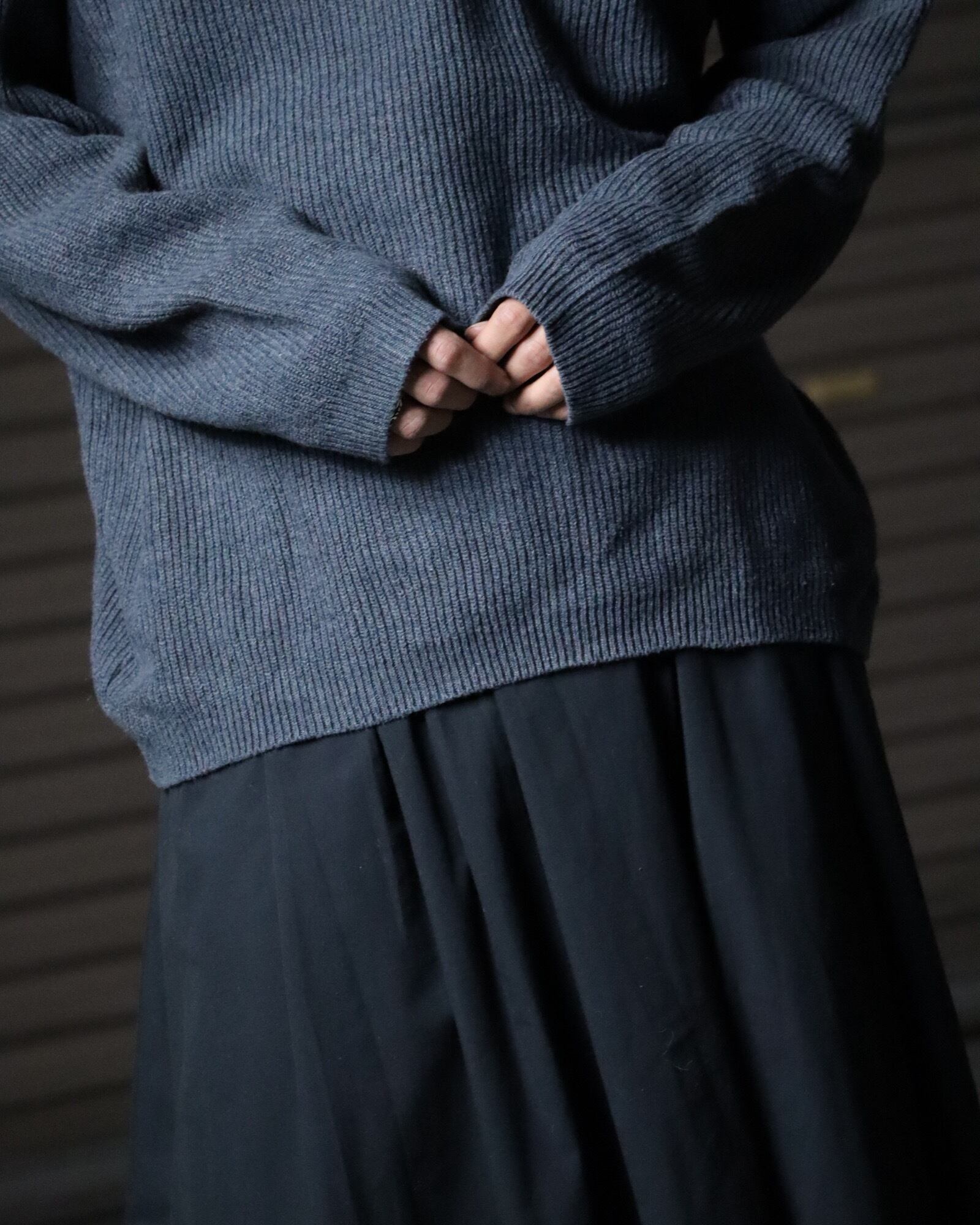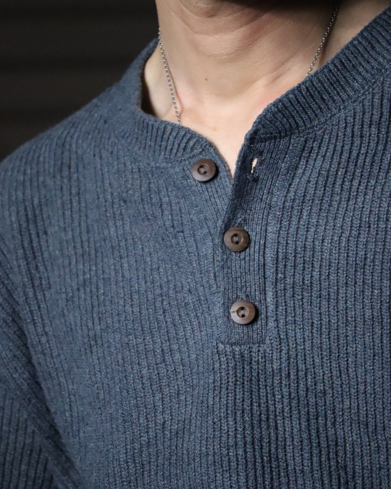 ▽Detail / ヘンリーネック、リブ編み、袖リブ