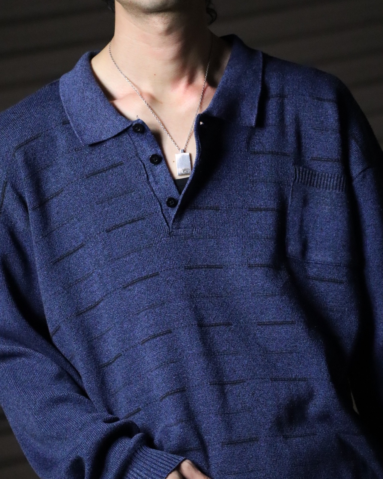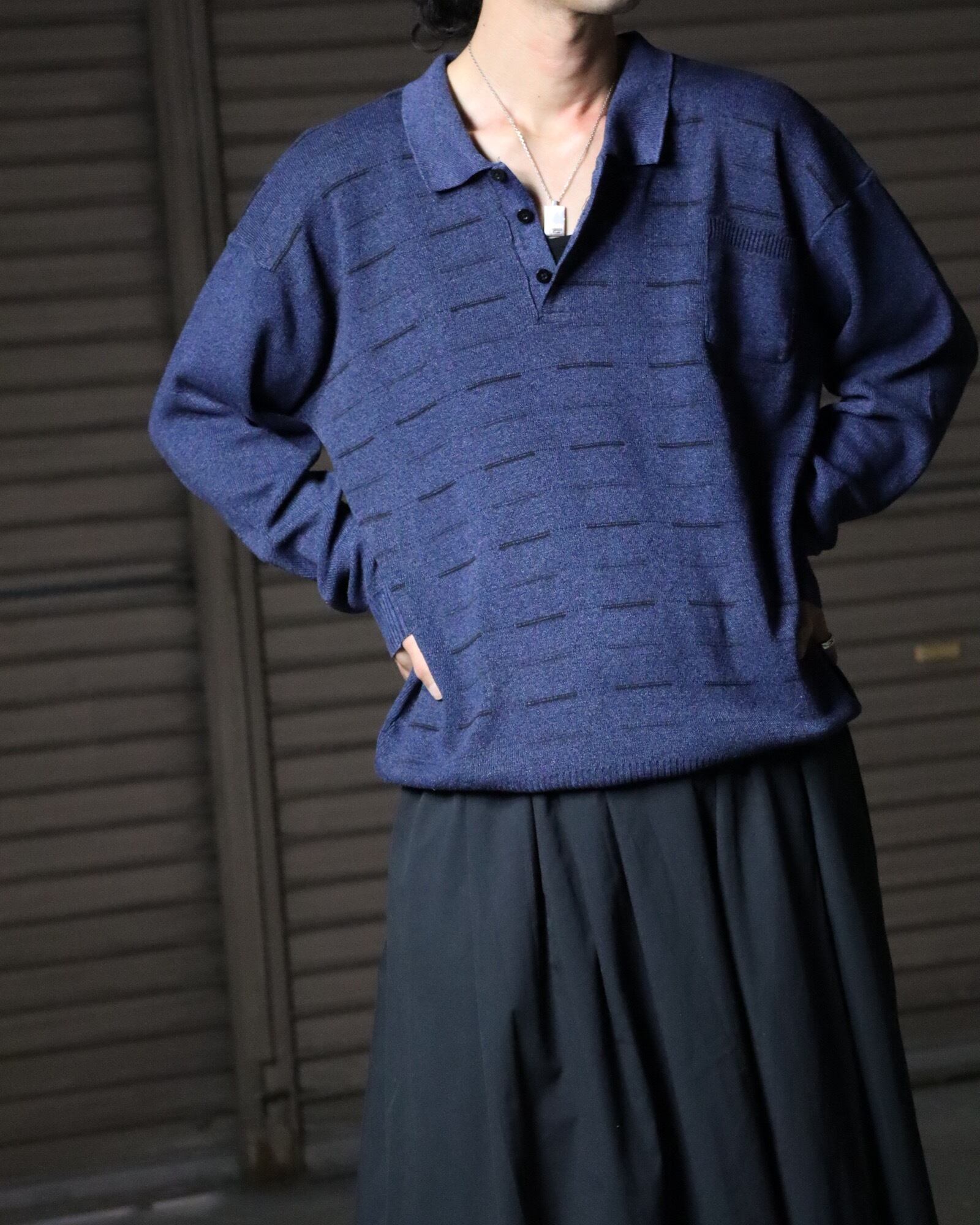 ▼Item / stripes jacquard oversized melange knit polo